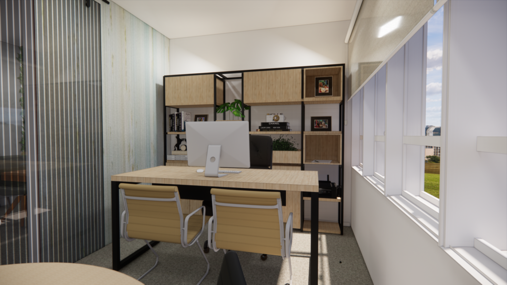 Este projeto foi concebido a partir do equilíbrio entre funcionalidade, conforto visual e identidade profissional. A proposta parte de uma leitura sensível da rotina de trabalho, priorizando ergonomia, organização e fluidez espacial, sem abrir mão da estética.