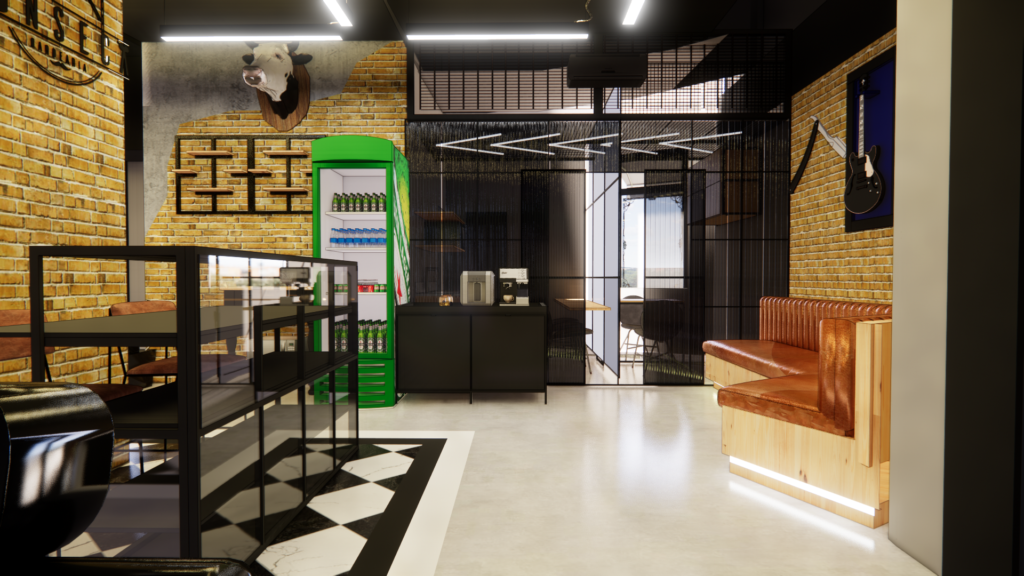 Este projeto traduz uma barbearia de identidade forte e urbana, inspirada no estilo industrial clássico, reinterpretado de forma contemporânea. A combinação de tijolo aparente, concreto, preto predominante e iluminação linear aparente cria um ambiente marcante, masculino e autêntico. O piso em xadrez resgata a estética tradicional das barbearias old school, enquanto o layout amplo e organizado valoriza a experiência do cliente e o fluxo de trabalho. Elementos icônicos, materiais brutos e contrastes bem definidos constroem um espaço imponente, funcional e cheio de personalidade, pensado para ser memorável desde a entrada.